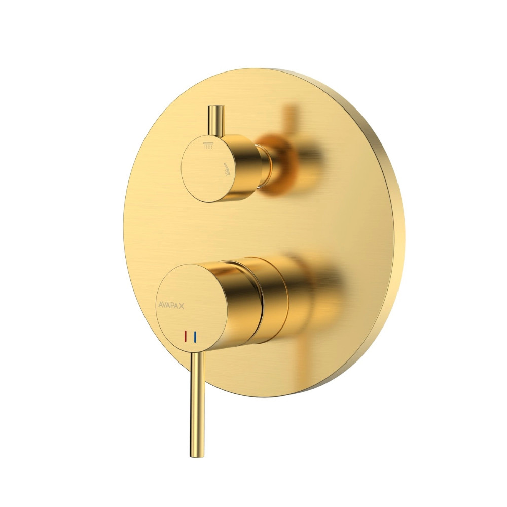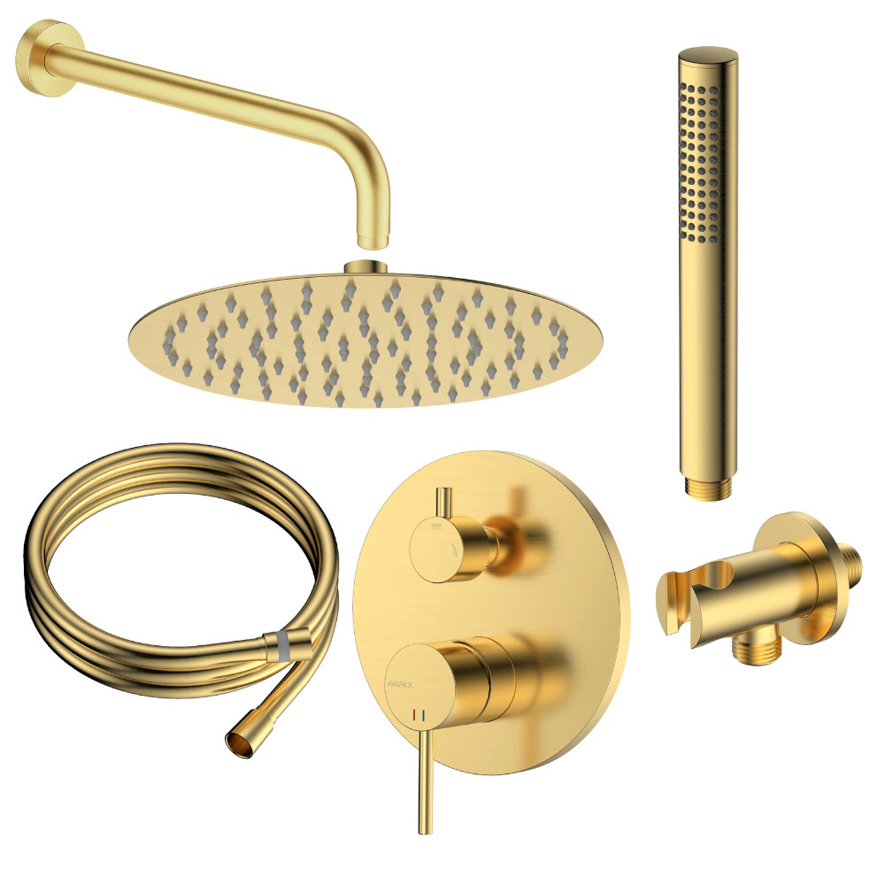 Avapax Ultimate deszczownia zestaw prysznicowy podtynkowy 2 funkcyjny, złoty szczotkowany