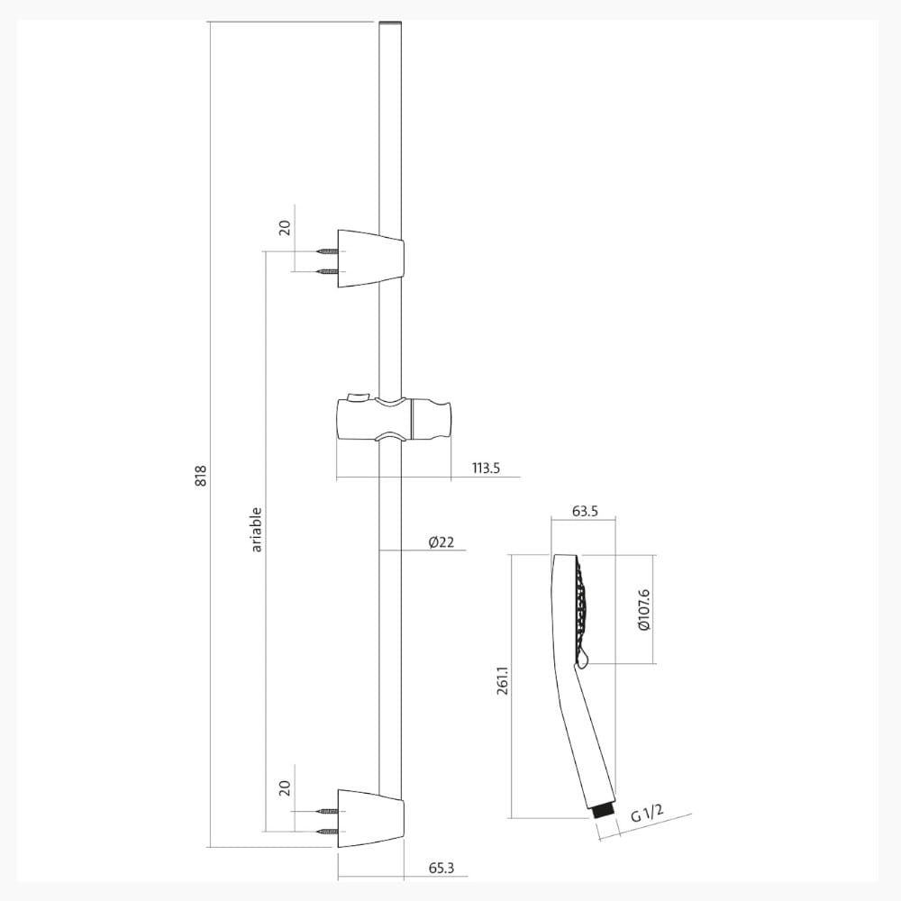 Cersanit Neno zestaw natryskowy z drążkiem chrom