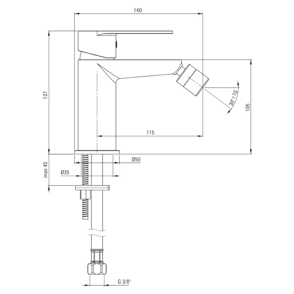 Wężyki przyłączeniowe: 450mm, 3/8xM10
