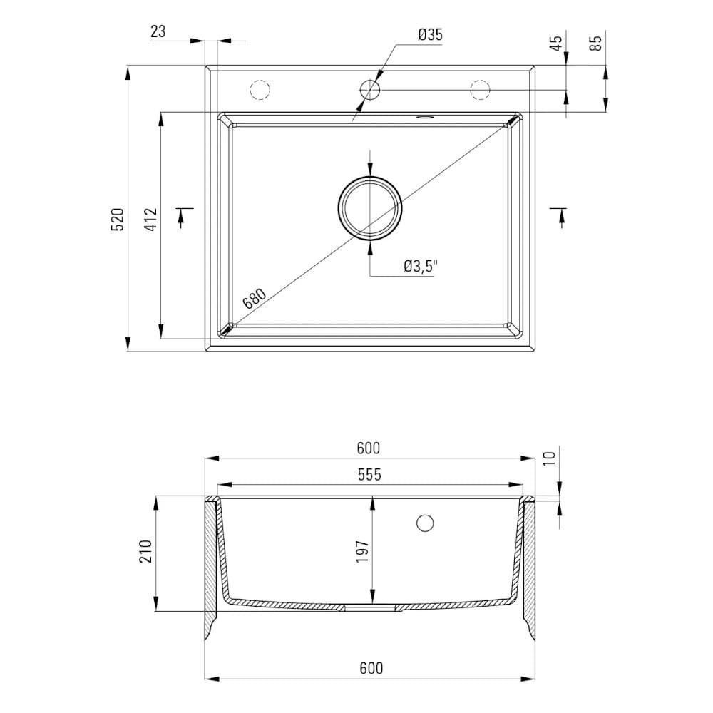 Średnica odpływu 3.5''