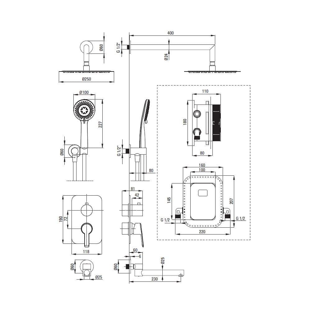 Rodzaj baterii: BOX podtynkowy, mieszaczowa