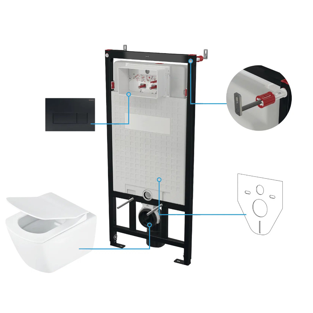 Deante Blur miska WC wisząca bezkołnierzowa + deska + stelaż + przycisk czarny.