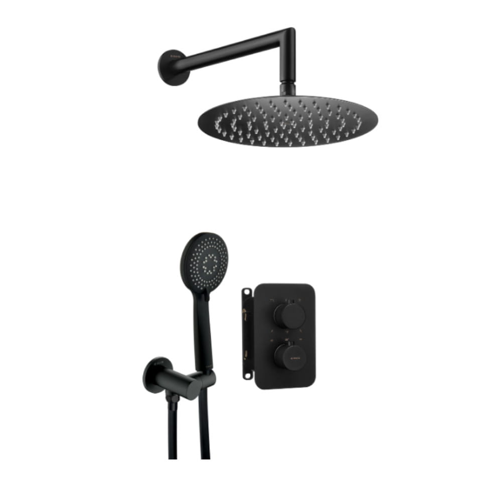 Deante Box zestaw podtynkowy natryskowy okrągły z boxem termostatycznym nero