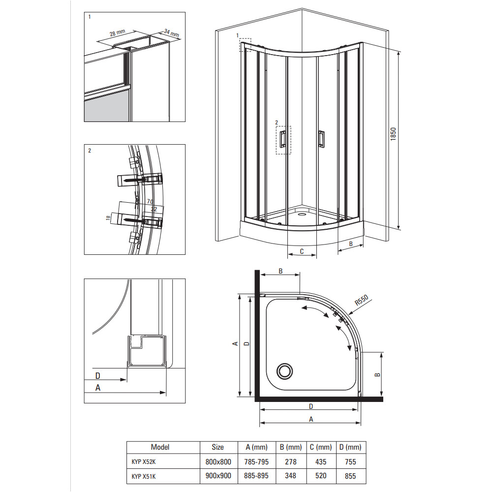 - Dolne rolki pozwalają na wypięcie drzwi i łatwiejszą pielęgnację kabiny