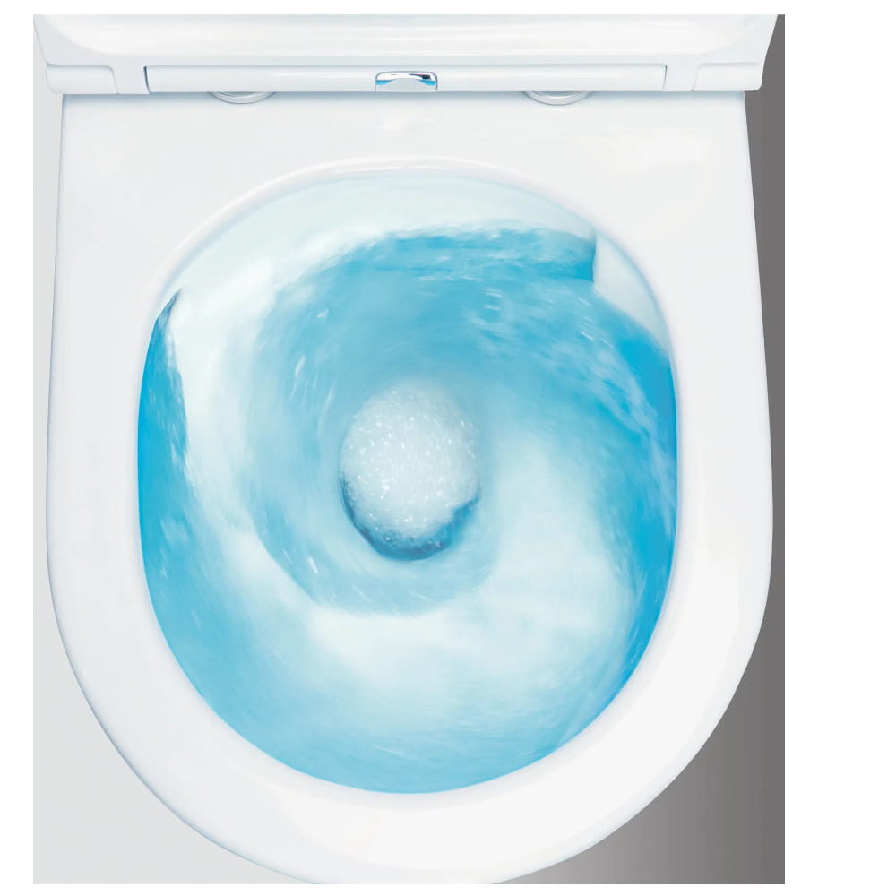 Zaawansowany system spłukiwania wirowego zapewnia wyjątkową skuteczność czyszczenia całej powierzchni miski przy mniejszym zużyciu wody. Strumień wody wprowadzany jest w ruch wirowy, co pozwala na szybkie i równomierne spłukanie, ograniczając powstawanie zabrudzeń i osadów. Dzięki temu codzienne użytkowanie staje się bardziej higieniczne, ciche i przyjazne dla środowiska.