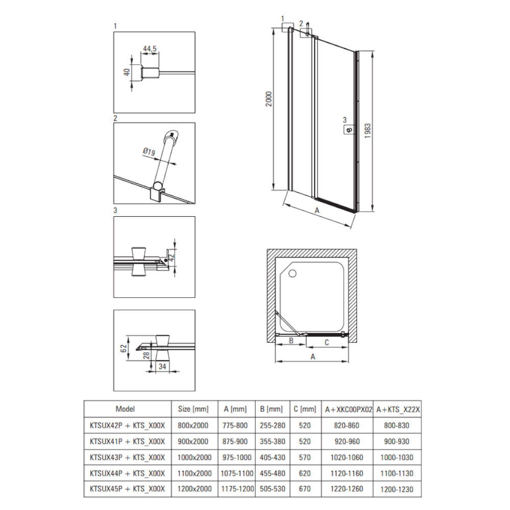 Drzwi uchylne Kerria składają się z panela stałego i części ruchomej. Wykonane zostały z hartowanego, transparentnego szkła TOTALWHITE. Jest to model odwracalny z cichym zamknięciem. Drzwi pokryte zostały hydrofobową powłoką Active Cover, która ułatwia utrzymanie kabiny w czystości. Czarne profile doskonale współgrają z armaturą w tym samym kolorze i idealnie wpisują się w nowoczesne i loftowe wnętrza. Drzwi mogą być zastosowane jako samodzielny produkt do wnęki lub jako element kabiny w komplecie ze ścianką KTS lub z drugimi drzwiami KTS.