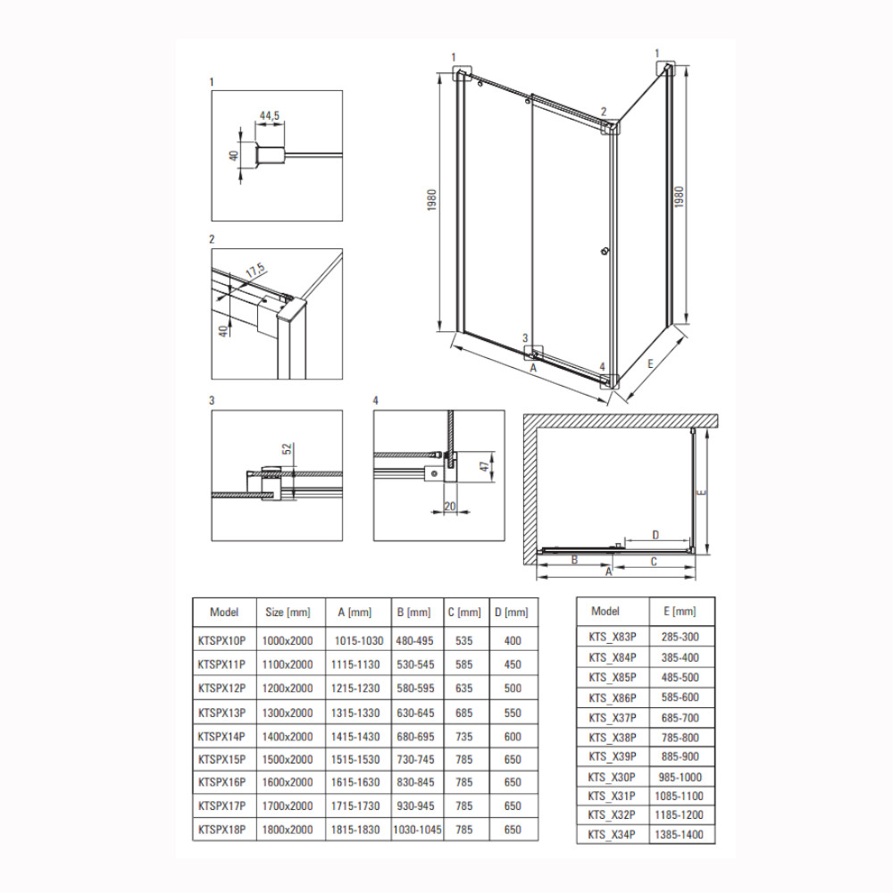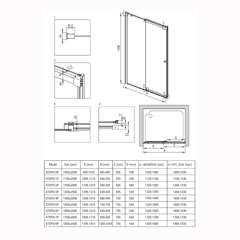 Drzwi prysznicowe przesuwne 120cm: KTSPN12P