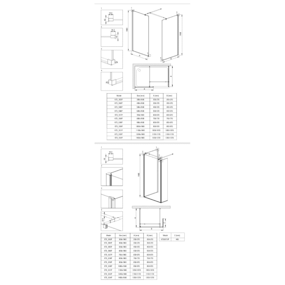 Montaż: Do kompletowania z drzwiami prysznicowymi KTS, walk-in KTS,możliwość montażu z ruchomym panelem KTS, jedną ścianką stałą