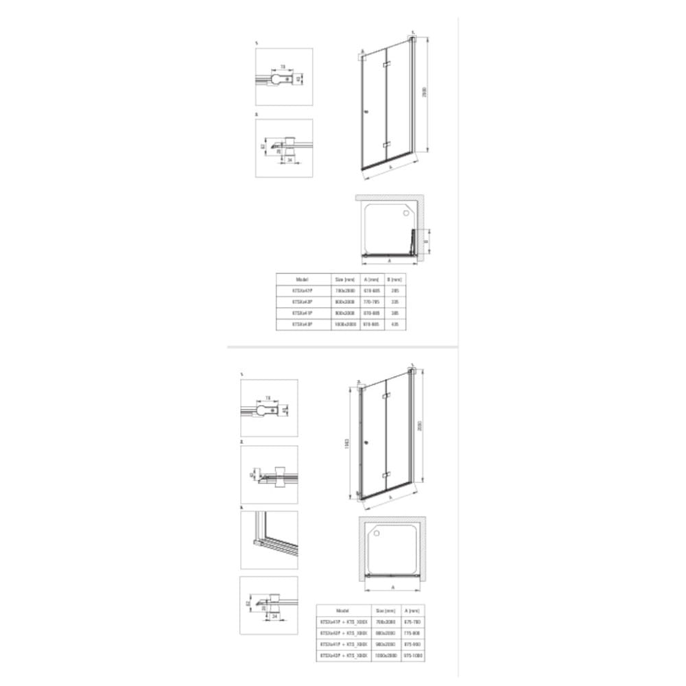- Drzwi prysznicowe składane 90cm: KTSXN41P