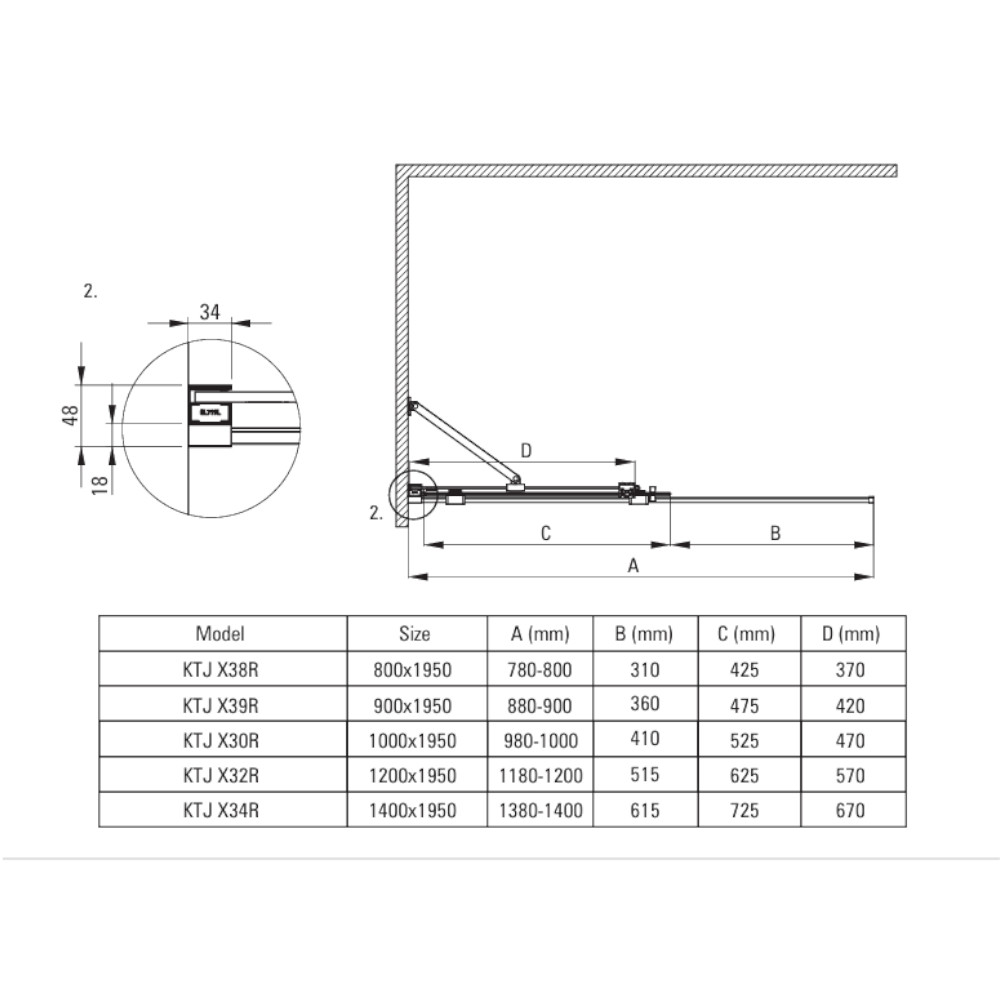 - Możliwość łączenia z drugą ścianką przesuwną i ścianką prysznicową walk-in Prizma