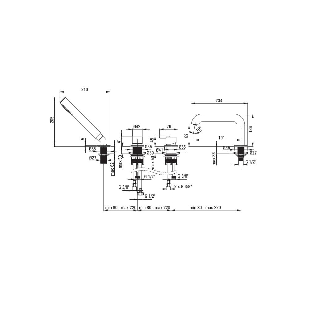 Deante Silia bateria wannowa 4-otworowa z zestawem prysznicowym chrom