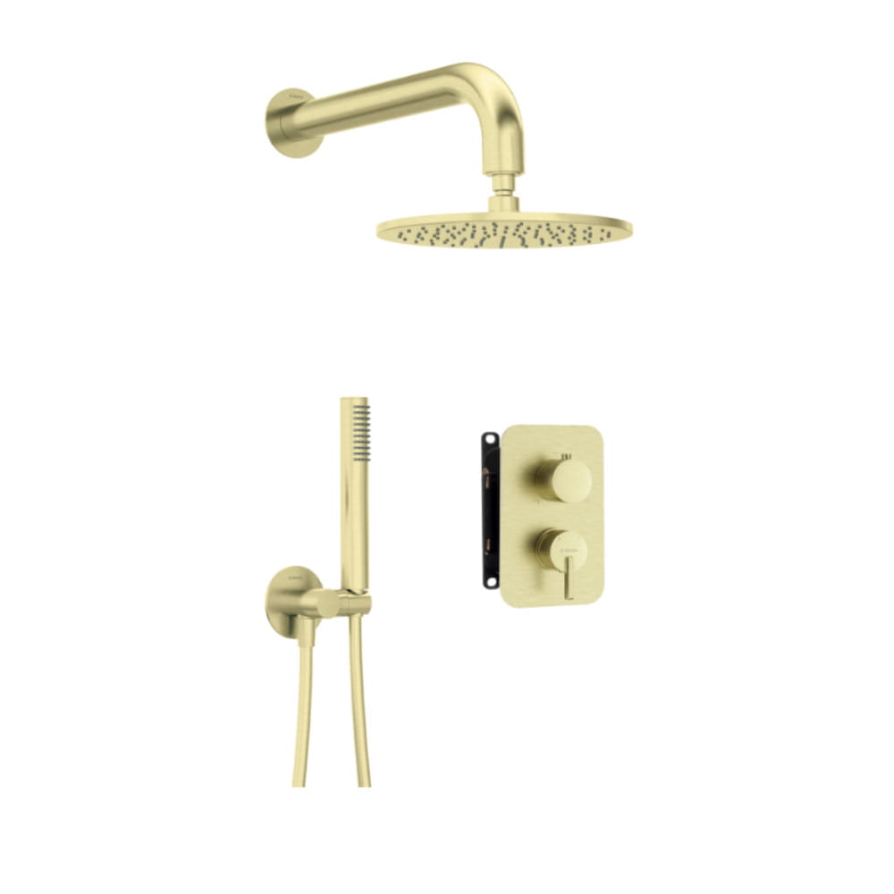 Deante Silia zestaw podtynkowy natryskowy z boxem mieszaczowym złoto szczotkowane