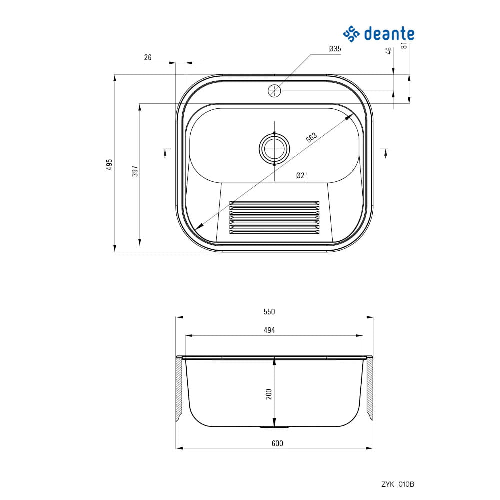 Deante zlewozmywak gospodarczy 1-komorowy stalowy 550x495x220 z otworem na baterię + osprzęt