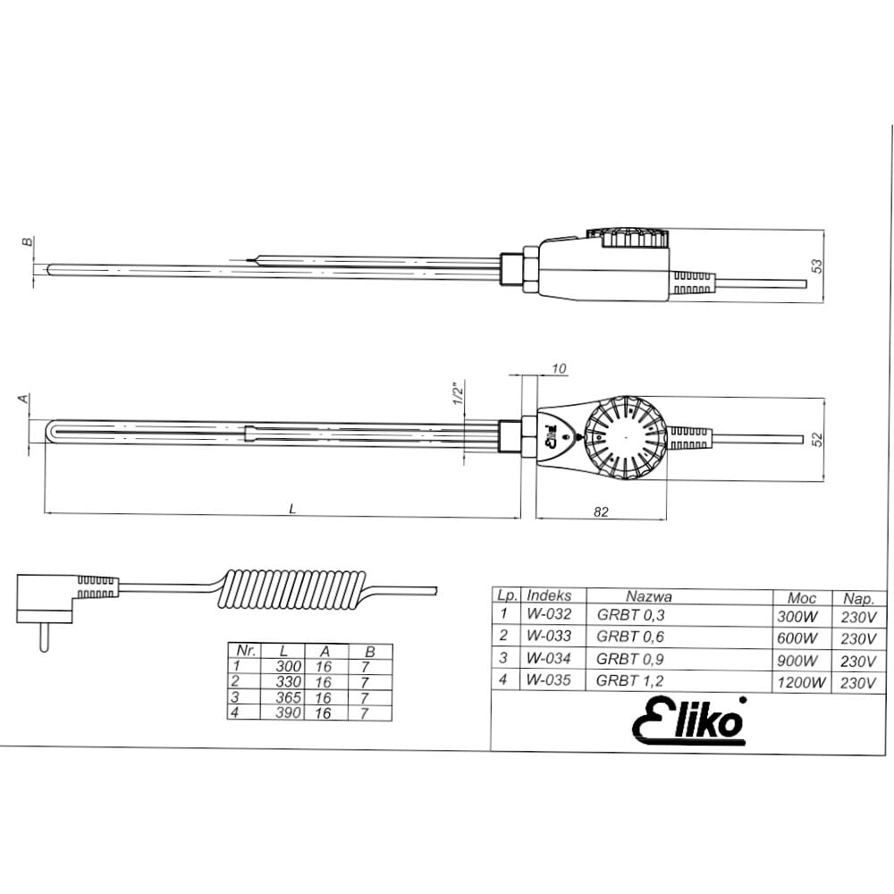 Eliko grzałka do grzejników łazienkowych w obudowie koloru białego 300W