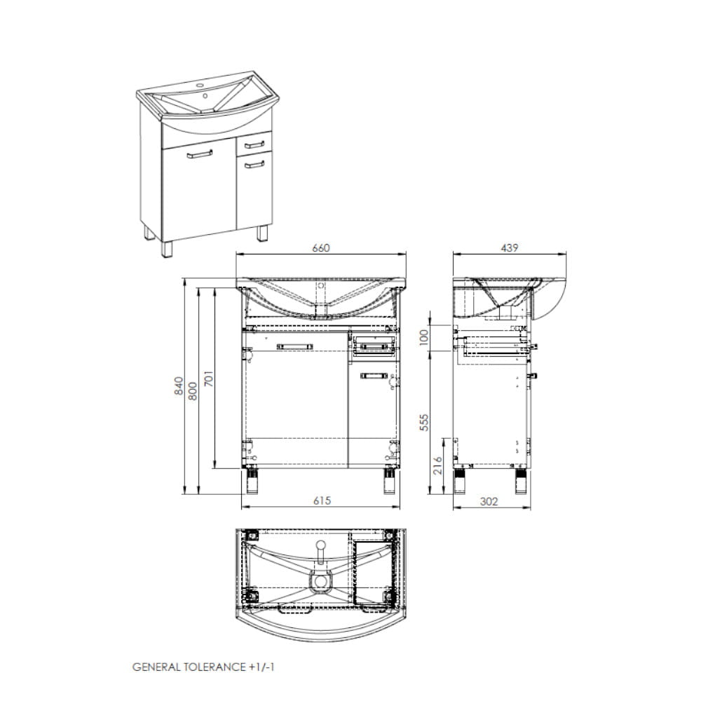 Wysokość szafki: 840 mm (razem z umywalką i nogami)