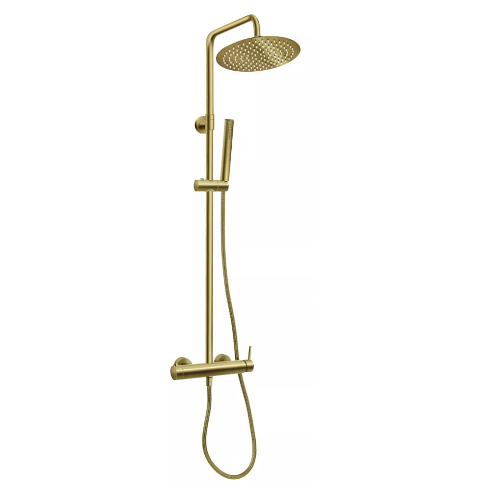 Ferro Ciriculus zestaw deszczownia okrągła z natryskiem i baterią złoto szczotkowane
