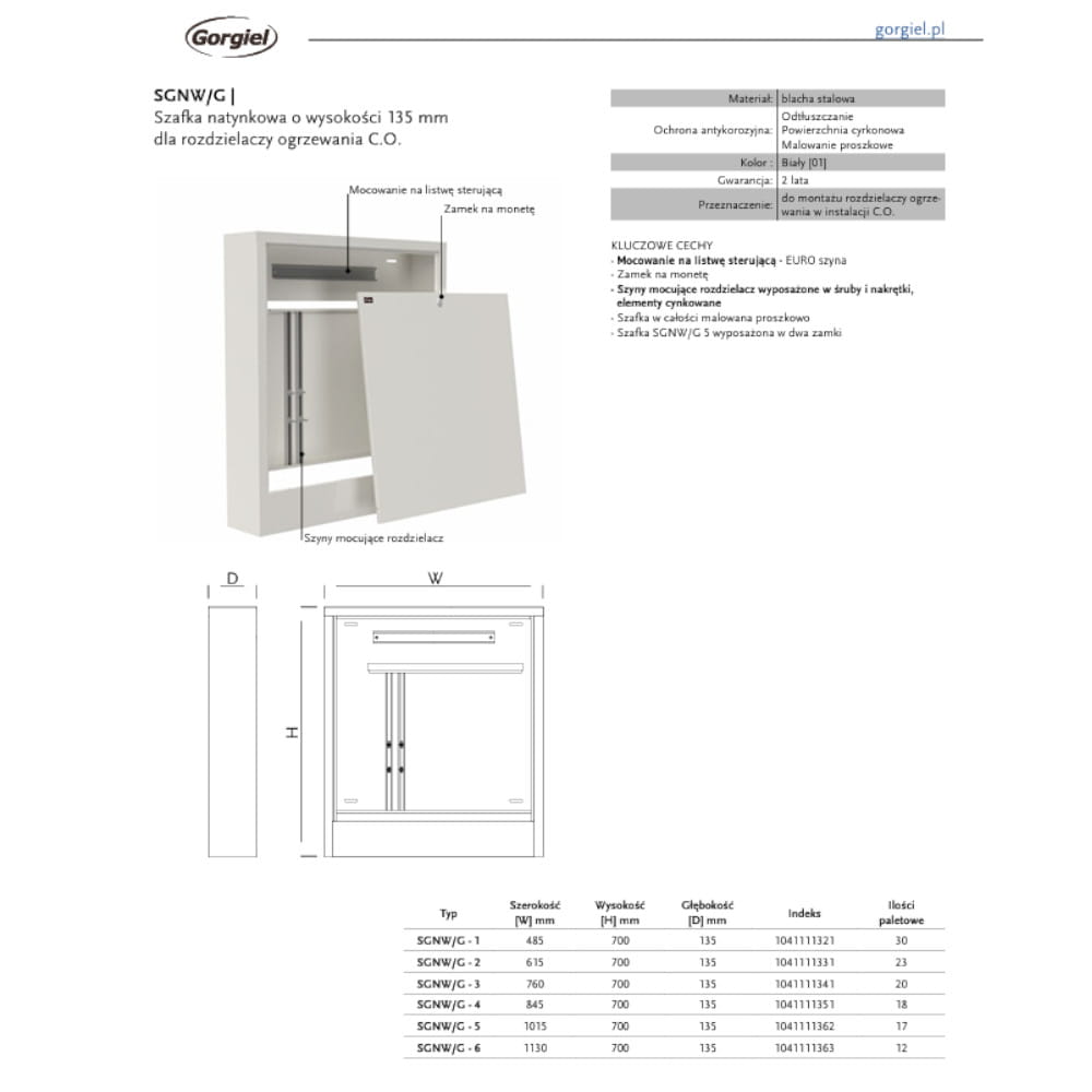 Typ: SGNW/G-4 szafka natynkowa do rozdzielaczy ogrzewania