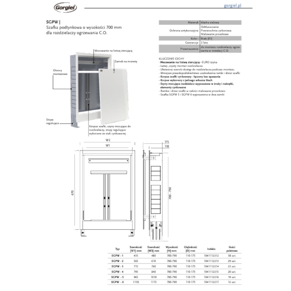 Typ: SGPW_2 szafka podtynkowa do rozdzielaczy ogrzewania