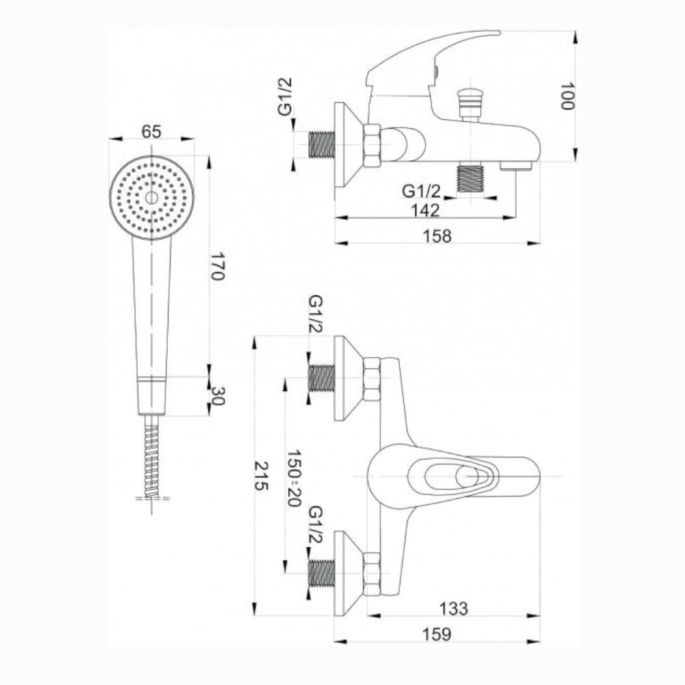 Uchwyt punktowy natrysku oraz rączka natryskowa 1-funkcyjna