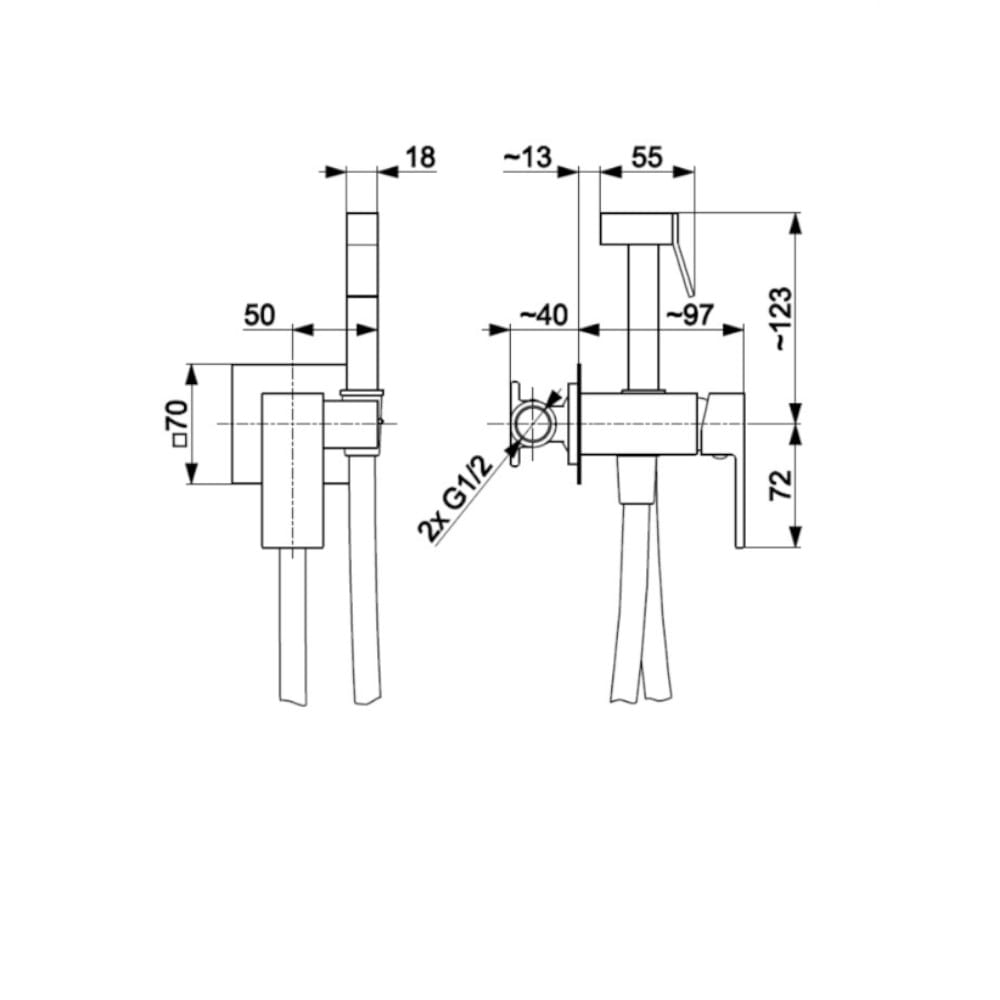 opakowanie zawiera: bateria bidetowa podtynkowa, wąż, rączka jednofunkcyjna