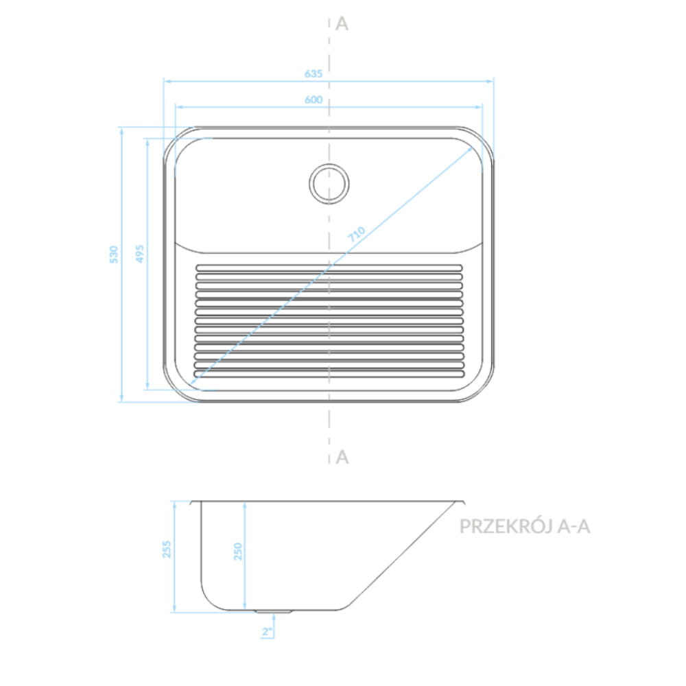 Kuchinox Eko zlewozmywak gospodarczy gładki inox wolnowiszący 53x63,5x25,5 cm