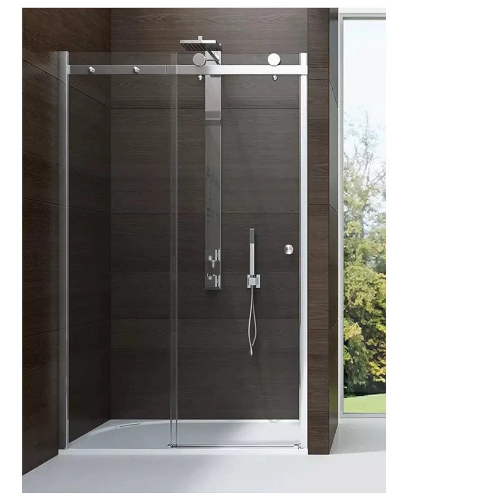 Kabina posiada pełny wymiar przy osadzeniu na brodziku o pełnych wymiarach, wymiar nominalny podlega regulacji w listwie przyściennej.