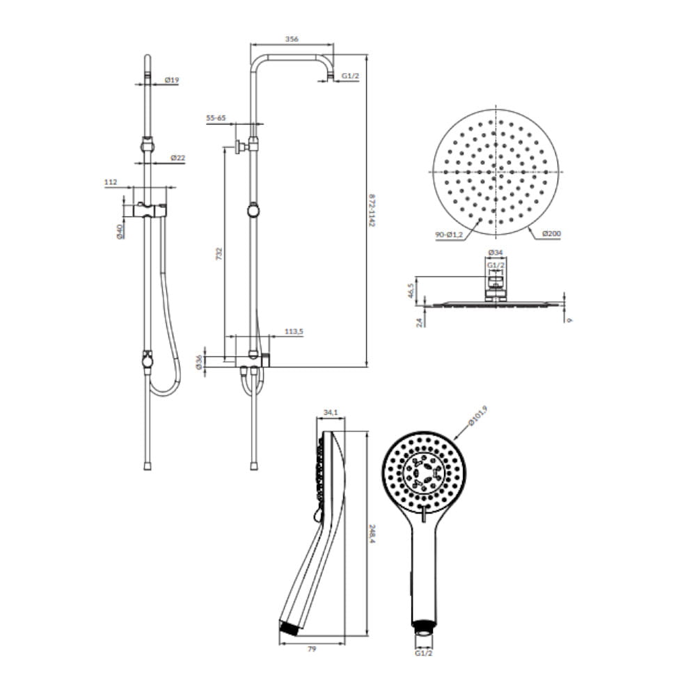 Uniwersalna kolumna prysznicowa natynkowa (UN10041CR) z przełącznikiem i ramieniem do montażu deszczownicy