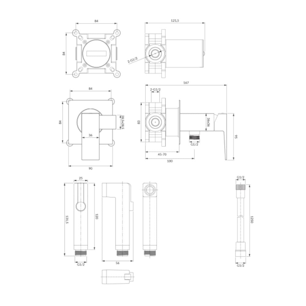 bateria bidetowa podtynkowa, element podtynkowy