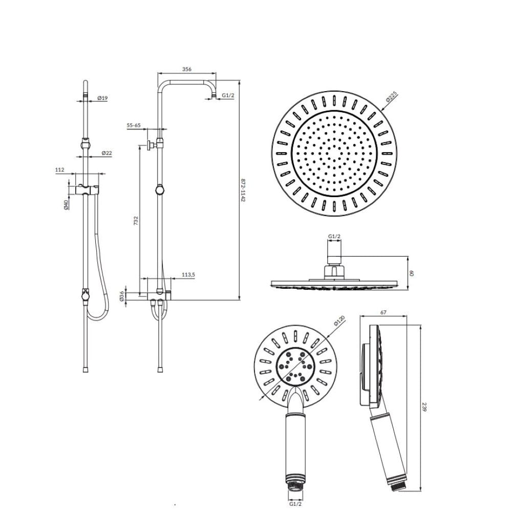 -kolumna prysznicowa z przełącznikiem i ramieniem do montażu deszczownicy