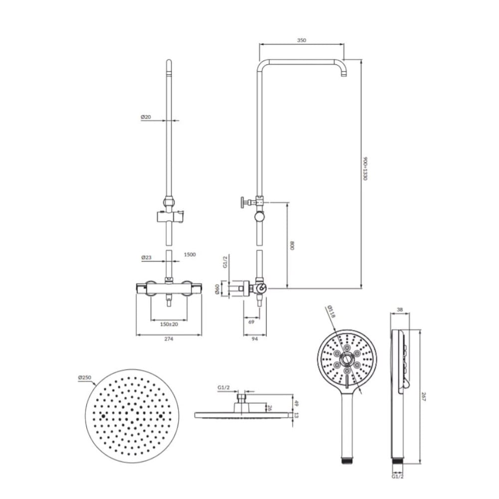 Omnires Y system prysznicowy natynkowy termostatyczny chrom