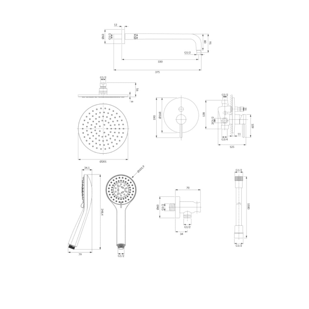 rączka prysznicowa (YOSEMITE-RCR), 5-funkcyjna, rodzaj strumienia: masaż, mgła, napowietrzony deszcz, napowietrzony masaż, napowietrzona mgła
