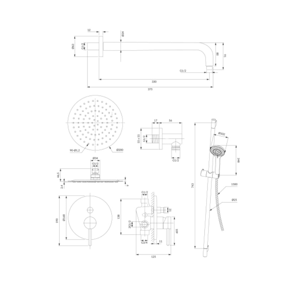 zestaw prysznicowy suwany (YOSEMITE-SCR), z rączką 5-funkcyjną