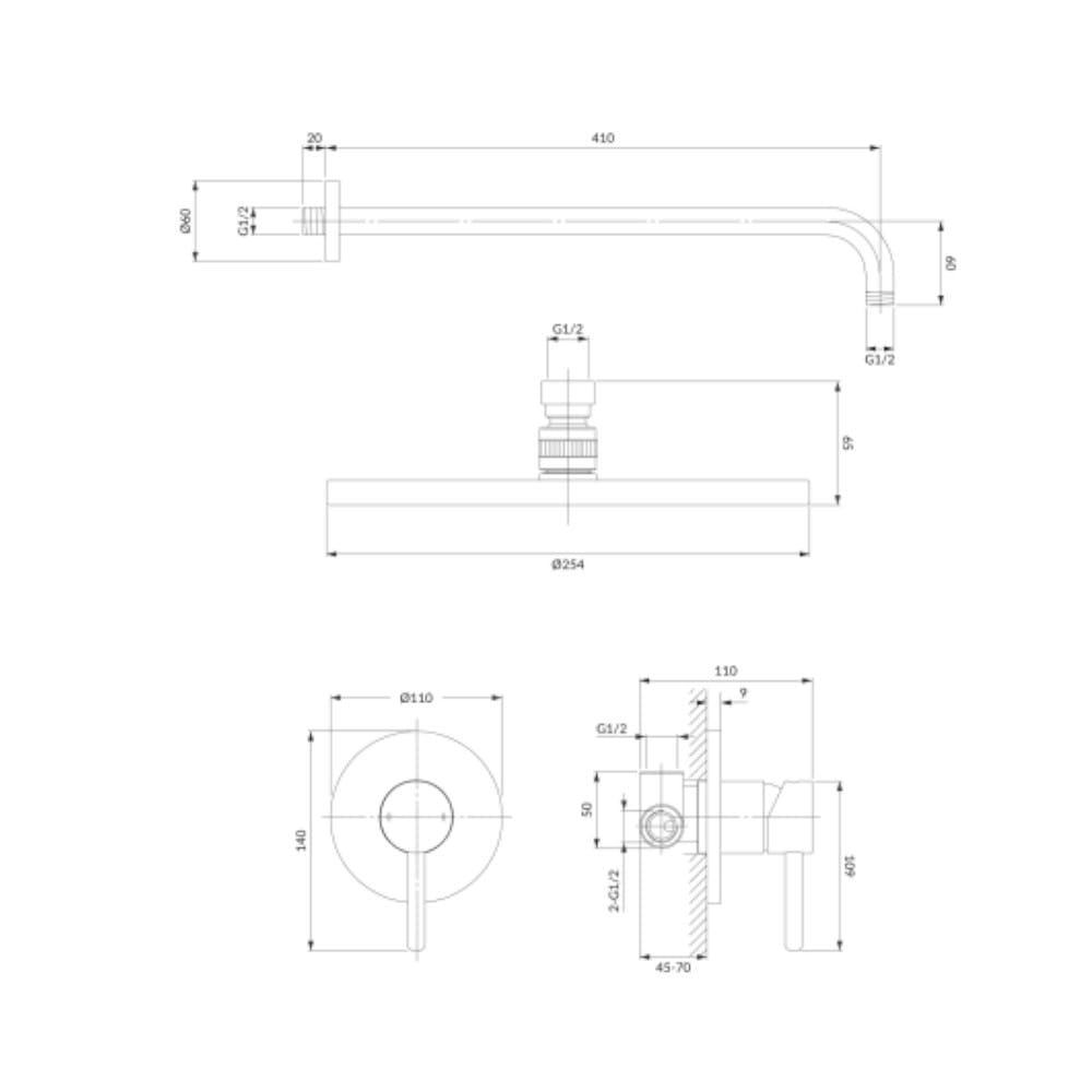 deszczownica mosiężna z ramieniem (WGSET1GR), rozmiar: o25 cm, zasięg od ściany: 41 cm
