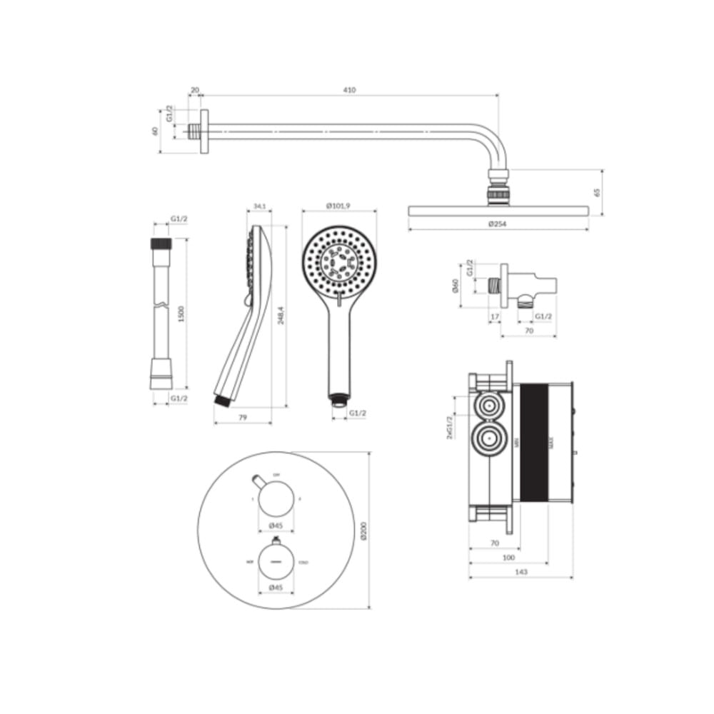 Omnires Y termostatyczny system prysznicowy podtynkowy miedź szczotkowana