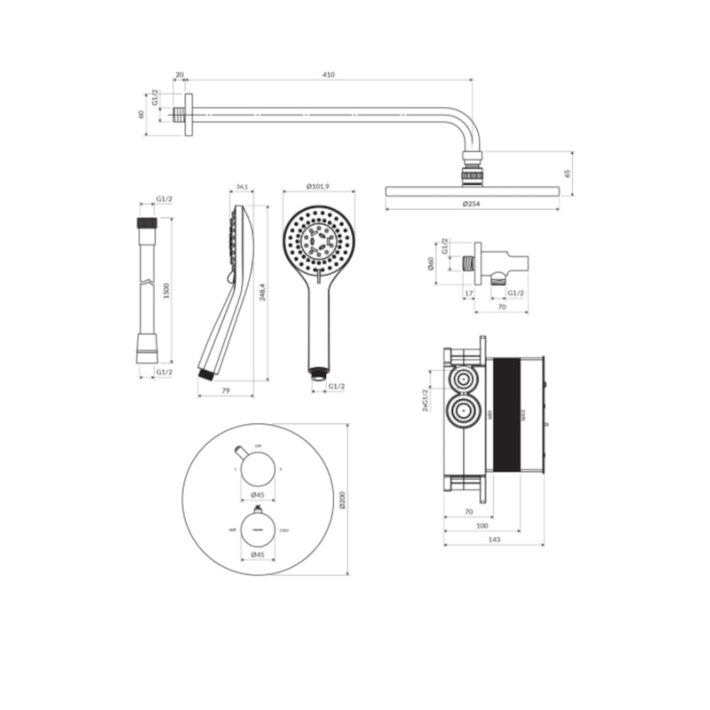 Omnires Y termostatyczny system prysznicowy podtynkowy miedź