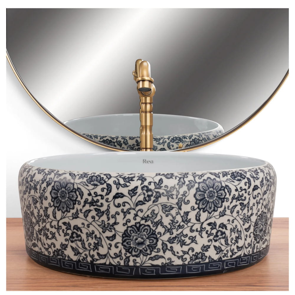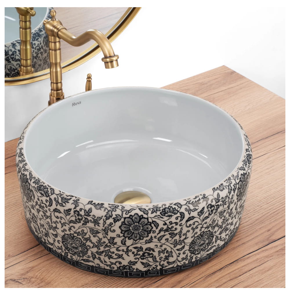 Rea Florisa umywalka nablatowa wzorzysta okragła
