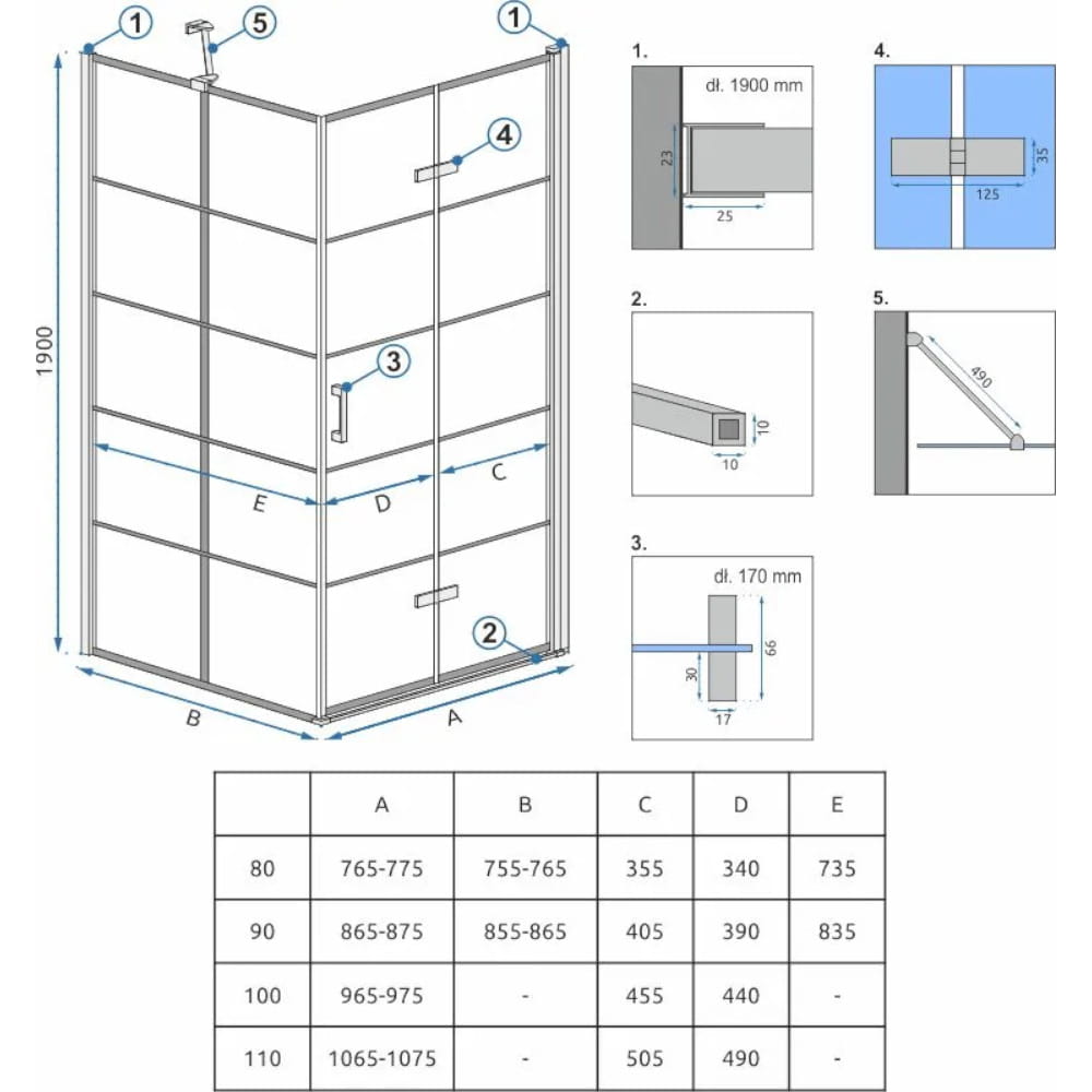 Możliwość utworzenia kabiny z dwóch elementów drzwi prysznicowych REA-K5660, REA-K8537, REA-K6963, REA-K8538