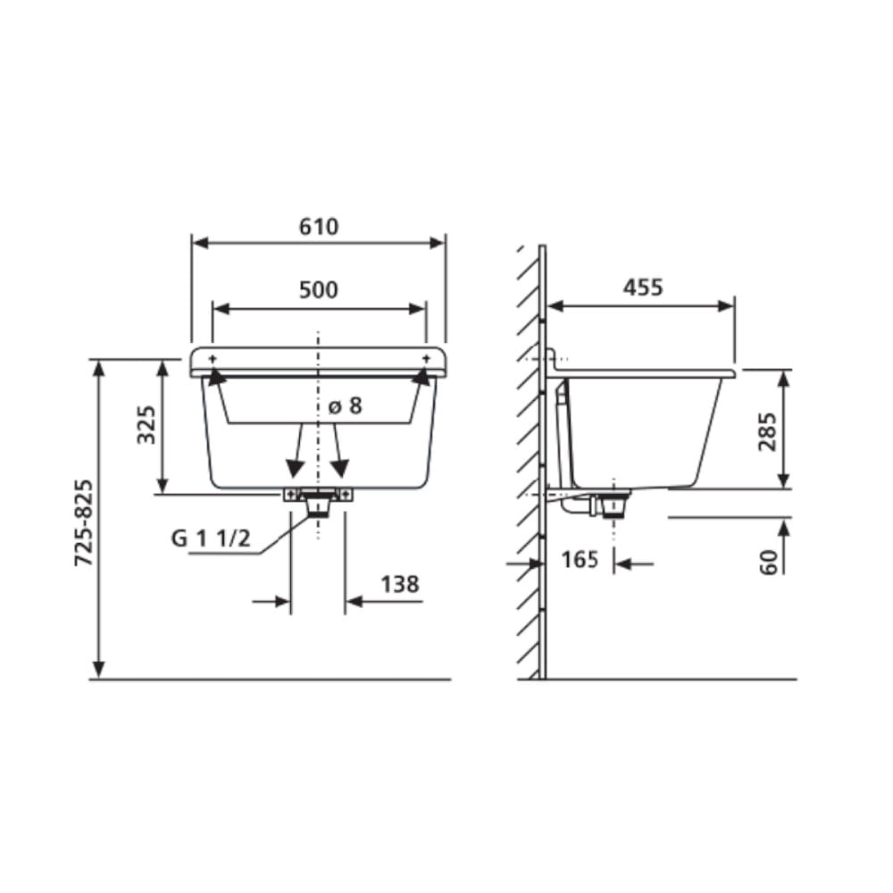 Wymiary wewnętrzne ( górne / dolne ): 500/400 mm (szer.) x 370/290 mm (gł.) x 270 mm (wys.)