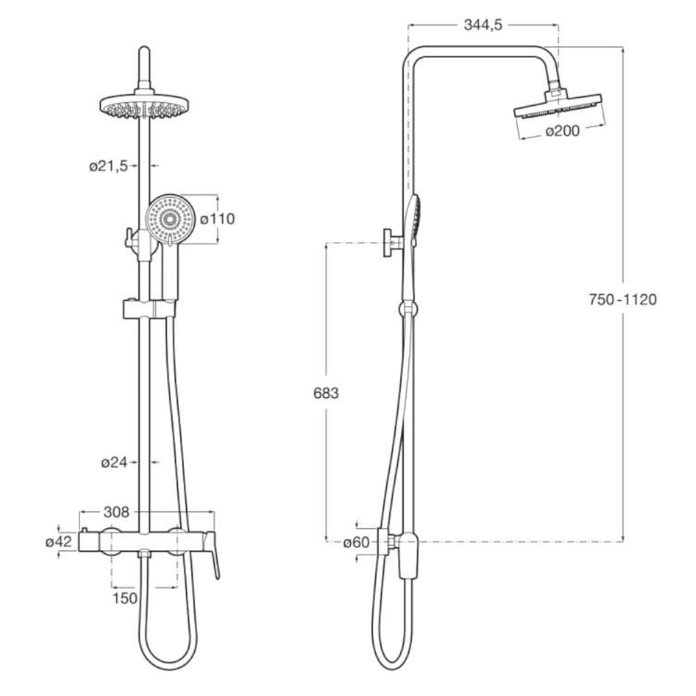 Roca Vega kolumna prysznicowa z baterią i deszczownicą 200mm chrom