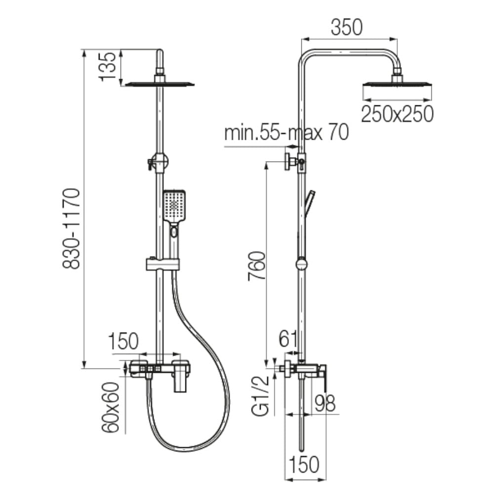 Valvex Ars deszczownia kwadratowa z baterią natryskową chrom