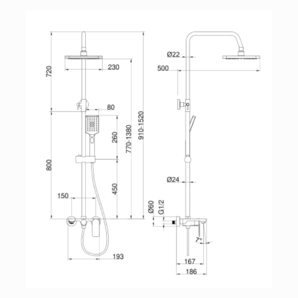 | Rodzaj | Natrysk przesuwny z deszczownicą i baterią |